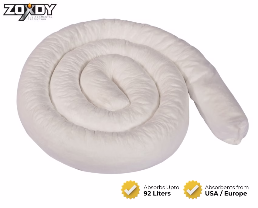 ZOXDY Oil-Only Absorbent Socks are made of pure polypropylene pulp encased in a lightweight yet robust polypropylene outer cover. They are specifically designed for controlling Oil-Only and Hydrocarbon spills, serving as proactive spill prevention measures across multiple industries prone to frequent spillages. These socks are hydrophobic, efficiently soaking up oils and hydrocarbons while resisting water, which makes them essential for environments prioritizing the cleanup and containment of oil spills.